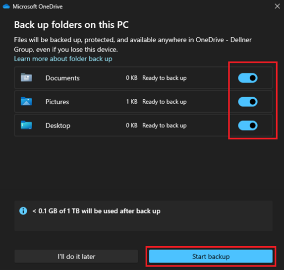 Konfigurieren Sie OneDrive für Ihr neues Dellner Group-Konto