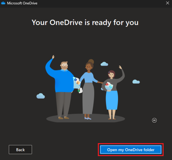 9. Sie können nun Ihren OneDrive-Ordner von hier aus öffnen und diesen Einrichtungsleitfaden wieder verlassen.