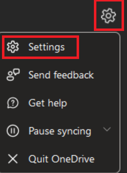 1. Dies geschieht über das Zahnrad im OneDrive-Menü, gefolgt von der Schaltfläche "Einstellungen".