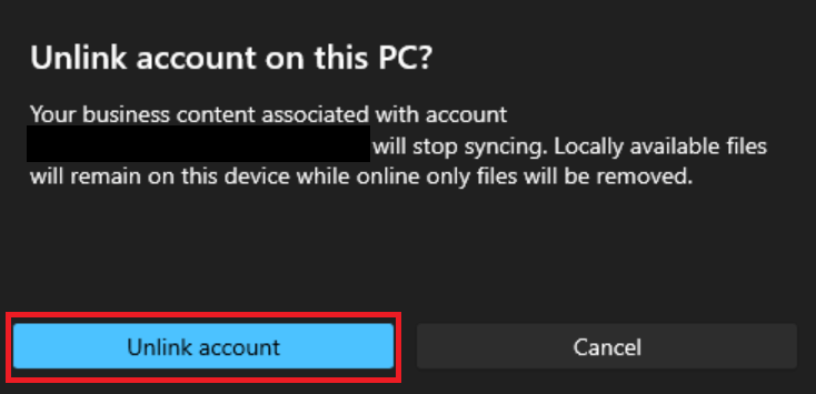 3. Gefolgt von "Konto entkoppeln" (alle lokal synchronisierten Dateien sind weiterhin auf Ihrem Gerät verfügbar)